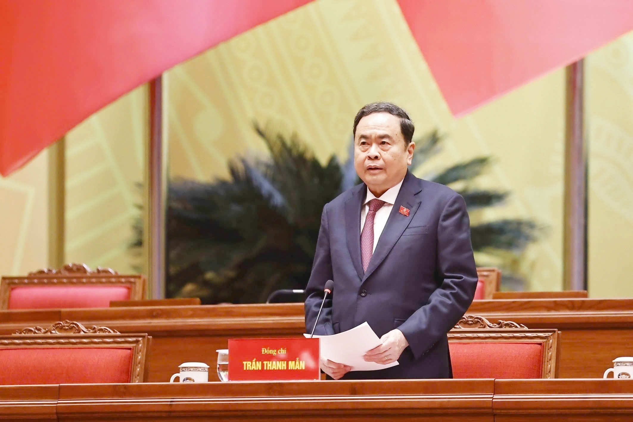 Đồng chí Trần Thanh Mẫn, Ủy viên Bộ Chính trị, Chủ tịch Quốc hội nước Cộng hòa xã hội chủ nghĩa Việt Nam, thay mặt các đồng chí lãnh đạo chủ chốt của Đảng và Nhà nước, đã điều hành phiên họp trù bị.